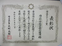 鳩山小学校では、学校応援団の皆様のご協力をいただきながら、四季色とりどりの花に囲まれた潤いのある環境作りに力を入れています。令和2年度には、鳩山小学校学校応援団が埼玉県から「彩の国美緑づくり活動団体」の認定証をいただきました。