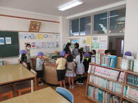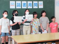 図書委員会は、本の貸し出しや図書室の整理・整頓等の常時の活動に加え、毎年10月には読書月間として、本により多く触れてもらう活動を行っています。今年度は、オンラインによる朝会で図書委員のお薦めの本を読み聞かせをしたり、クラス毎に「読書の王冠」を作成したりしました。読んだ本について「王冠」に書き、どのクラスもたくさんの王冠が貼られました。また、図書室に足を運んでもらおうと、読書スタンプカードを作成し、低学年の児童が中心に来室者が増え、図書委員の児童も喜んでいました。