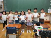 日頃から読書に取り組んでもらおうと、「読書貯金カード」を用いて読んだ本の記録をしています。コロナ禍となり、前任の校長先生の時から始めました。少しずつ取り組み方を工夫し、読んだ冊数(発達段階に考慮して設定しています)に応じて「読書賞」「読書大賞」の賞状を子供たちにプレゼントしています。令和4年度からは、町立図書館様とも連携し、図書館長様からの賞状をいただけるようになりました。私自身は「読書貯金カード」にある子供たちとのコメントのやりとりを楽しませてもらっています。コメントを読む度に、子供たちの素直な感性に驚かされます。これからも本の世界を味わう中で、物の見方を広げたり、相手の気持ちを思いやったりと心を耕していってほしいです。