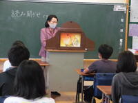 本校では、毎月第1月曜日の業前の時間に、学校応援団の読み聞かせボランティア「お話玉手箱」の皆様による本の読み聞かせを行っています。子供たちは毎月この時間をとても楽しみにしています。季節にあった内容や子供たちの成長にあった内容等、ボランティアの皆様が図書館等に足を運び選んだ本を読み聞かせてくださっています。新型コロナ感染症によるまん延防止措置の時期は、オンラインによる読み聞かせにも挑戦してくださいました。読み聞かせだけではなく、本の修繕等にも取り組んでいただいています。地域の方、鳩小OBの方、鳩小保護者の方が「お話玉手箱」に登録していただいています。HPをご覧になってご興味のある方は、鳩山小までご連絡ください。